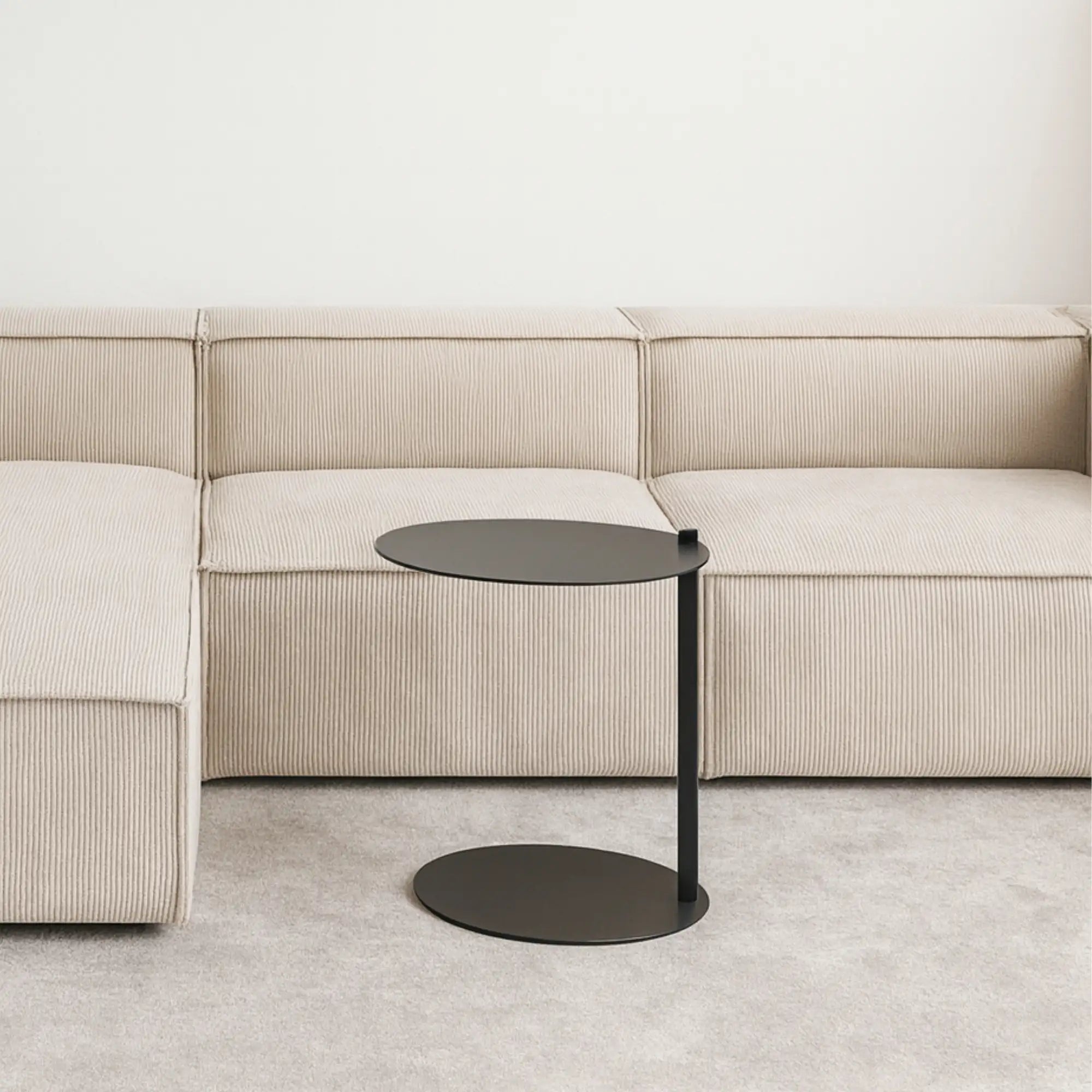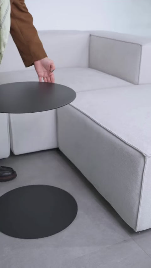 Dieser runde Beistelltisch aus pulverbeschichtetem Metall überzeugt durch seine klare, moderne Formsprache und hochwertige Verarbeitung. Die schlanke Silhouette fügt sich harmonisch in jedes Wohnkonzept ein – von urban minimalistisch bis zeitlos elegant.