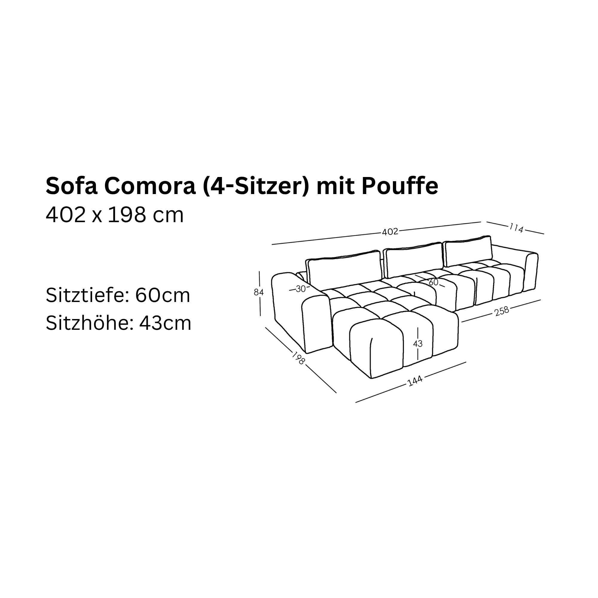 Modulares Sofa Comora (4-Sitzer) mit Pouffe